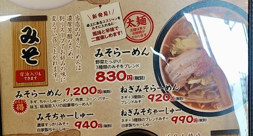 最初から「塩らーめん」にしようと思ってたので、あまり他のメニューには気に留めなかったのですが、「しょうゆ」「みそ」「燕三条(背脂)」「つけめん」と いろいろあるんですね。